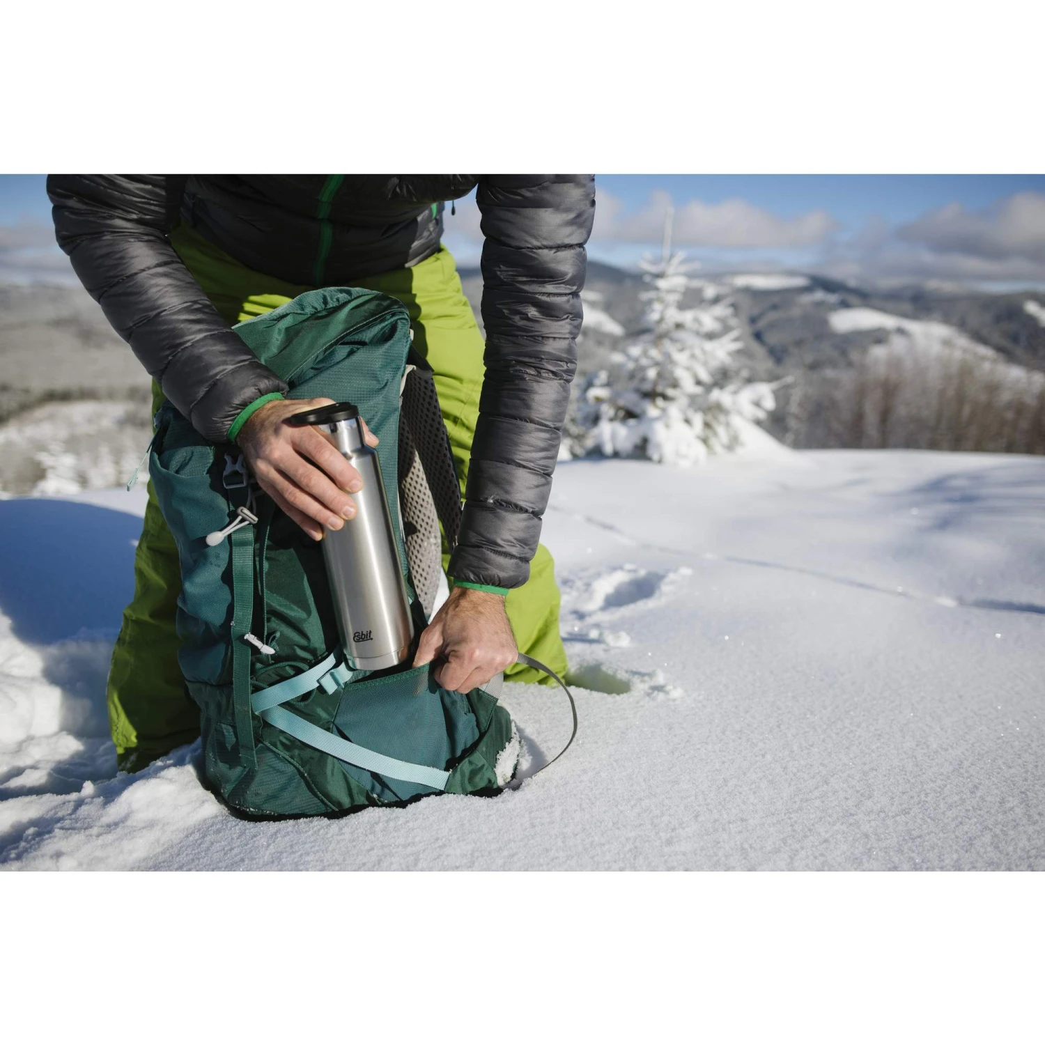Doppelwandige Isolierflasche aus unlackiertem 18/8 Edelstahl. Das formschöne Design passt gut in die Seitentasche deines Rucksacks. Mit seitlichem Loop-Verschluss zum Tragen und sichern per Karabiner.