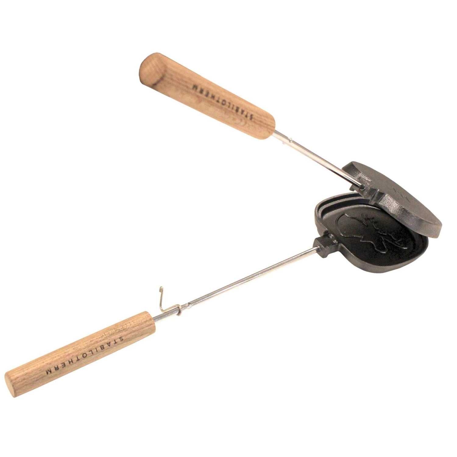 Der Sandwichmaker aus Stahl eignet sich für hohe Temperaturen und bereitet leckere Sandwiches direkt auf dem Lagerfeuer zu. Verziert wird das Sandwich mit einem Elchmotiv!